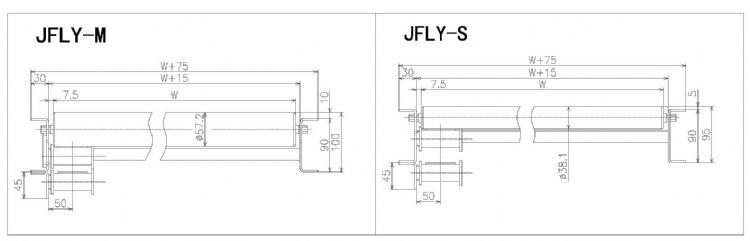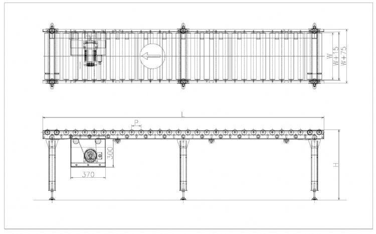 产品应用 该型输送机使用平皮带在滚筒下方摩擦驱动各个滚筒。适用于轻重量载荷、对滚筒连动要求不高的场合。 主要技术参数 滚筒直径:Ø38mm、Ø57mm 支架: 90mm槽钢 幅宽: 300mm~800mm 搬送能力:max约50kg/m 产品仕样